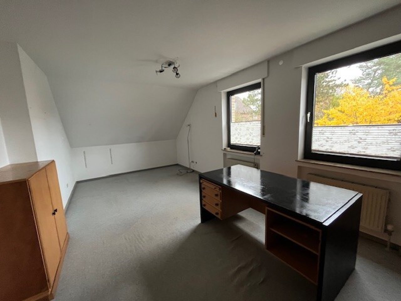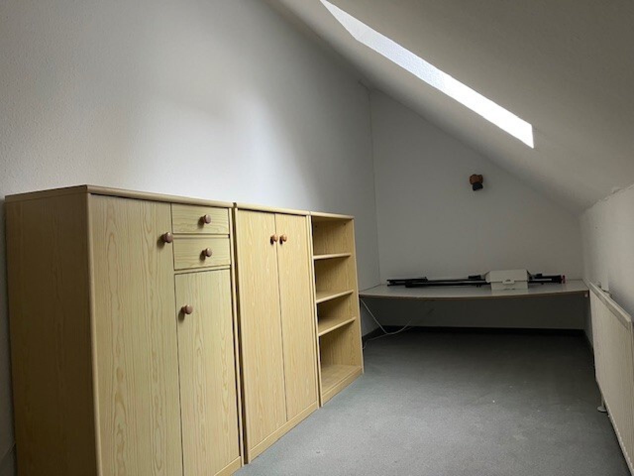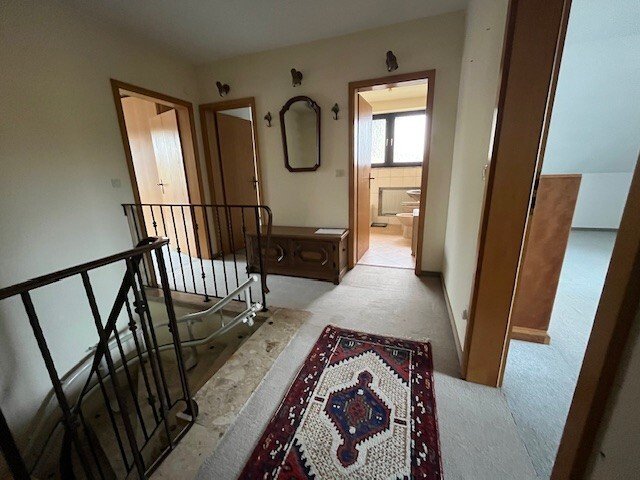 Im Obergeschoss befinden sich die Schlafräume, ein Ankleidezimmer sowie das 2013 renovierte Badezimmer. Vom Obergeschoss aus führt eine Raumspartreppe in den Spitzboden, der derzeit als Stauraum dient, aber auch ausbaufähig ist und somit zusätzliches Potenzial für individuelle Wohnideen bietet - ideal für Familien mit Platzbedarf oder als Homeoffice-Lösung.