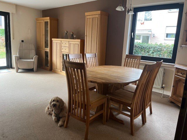 Im Erdgeschoss erwartet Sie eine großzügige Küche mit Platz für eine gemütliche Essecke sowie ein großer Wohn- und Essbereich, der durch seine Helligkeit besticht und einen direkten Zugang zur Terrasse und zum Garten bietet. Von hier aus gelangt man zudem praktisch direkt zur Garage. Der Garten selbst bietet durch seine Größe und Ausrichtung viele Möglichkeiten zur Erholung und Freizeitgestaltung.