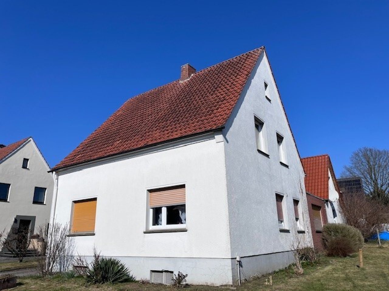 Die Gesamtwohnfläche beträgt ca. 126 m², verteilt auf zwei Wohneinheiten. Das Erdgeschoss ist aktuell vermietet, während das Obergeschoss freigestellt ist und nach einer Renovierung entweder vermietet oder selbst genutzt werden kann. Im Obergeschoss wurden die Fenster bereits erneuert, im Erdgeschoss teilweise.